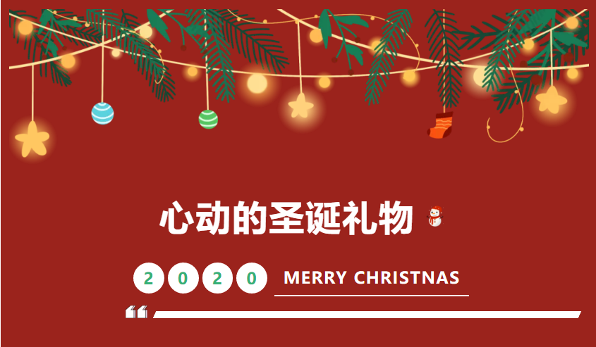 叮叮当 叮叮当~铃儿响叮当~ 圣诞的脚步已经悄然接近 充满坎坷与困难的2020年即将结束 让我们用心准备一份令人心动的圣诞礼物 一起用爱与祝福开启美好的2021年