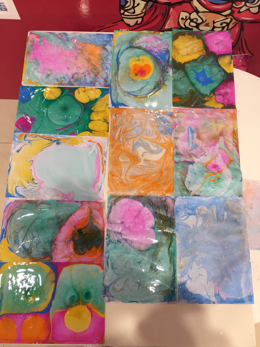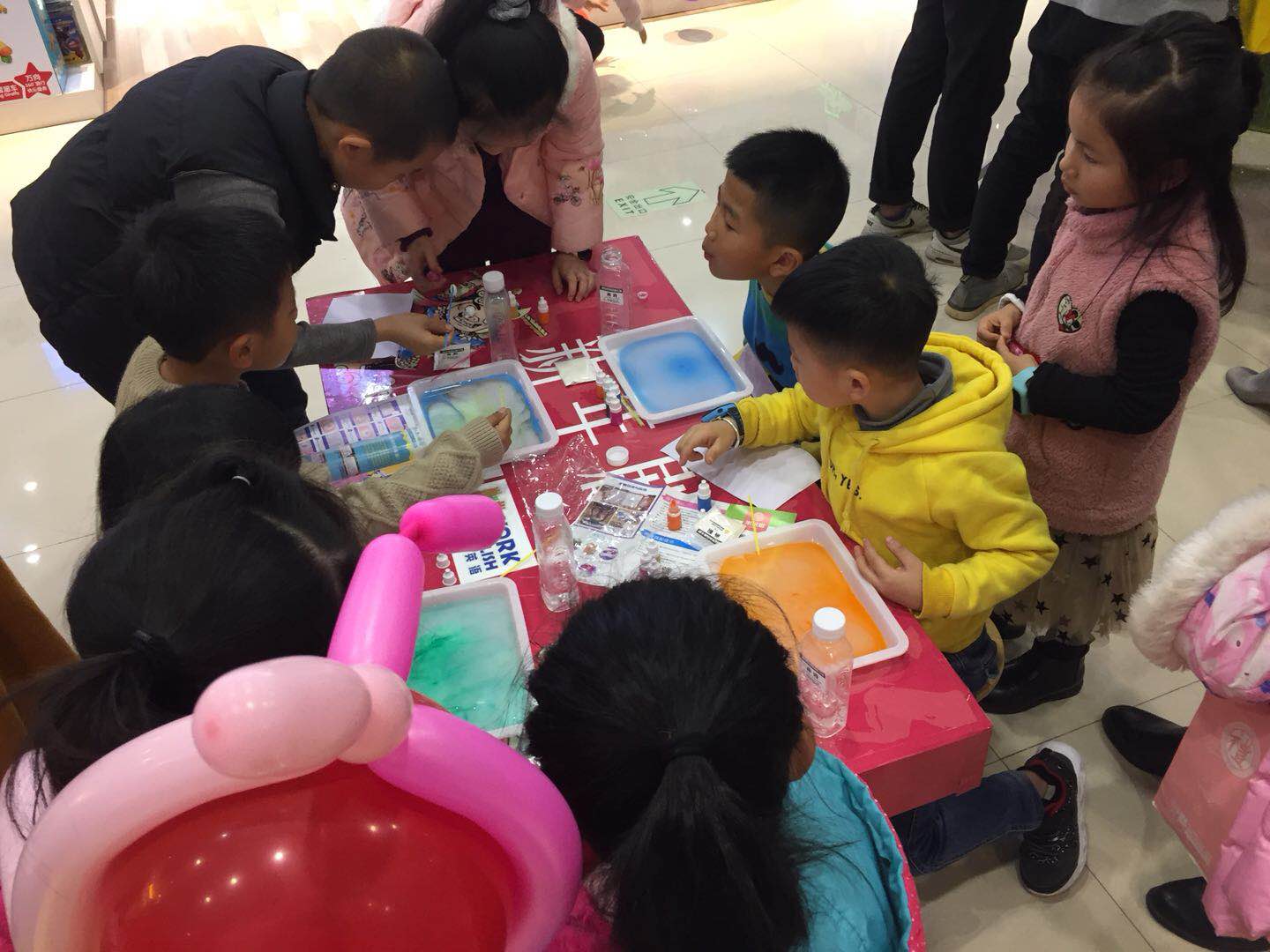 活动现场外国友人和中国小朋友们闹成一团,共同庆贺这新年的到来。他们一起DIY水拓画,一起围坐着唱响新年之歌。