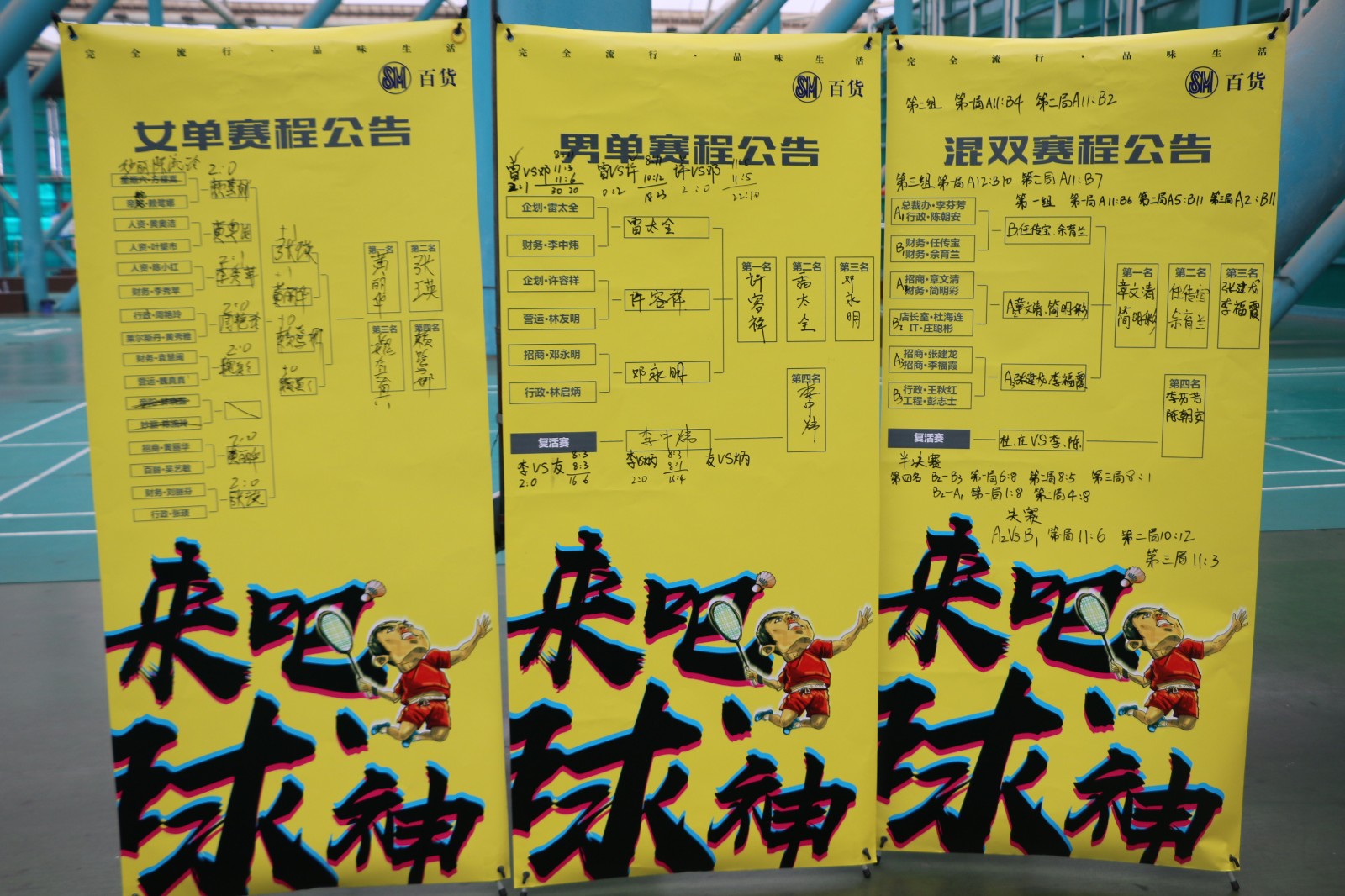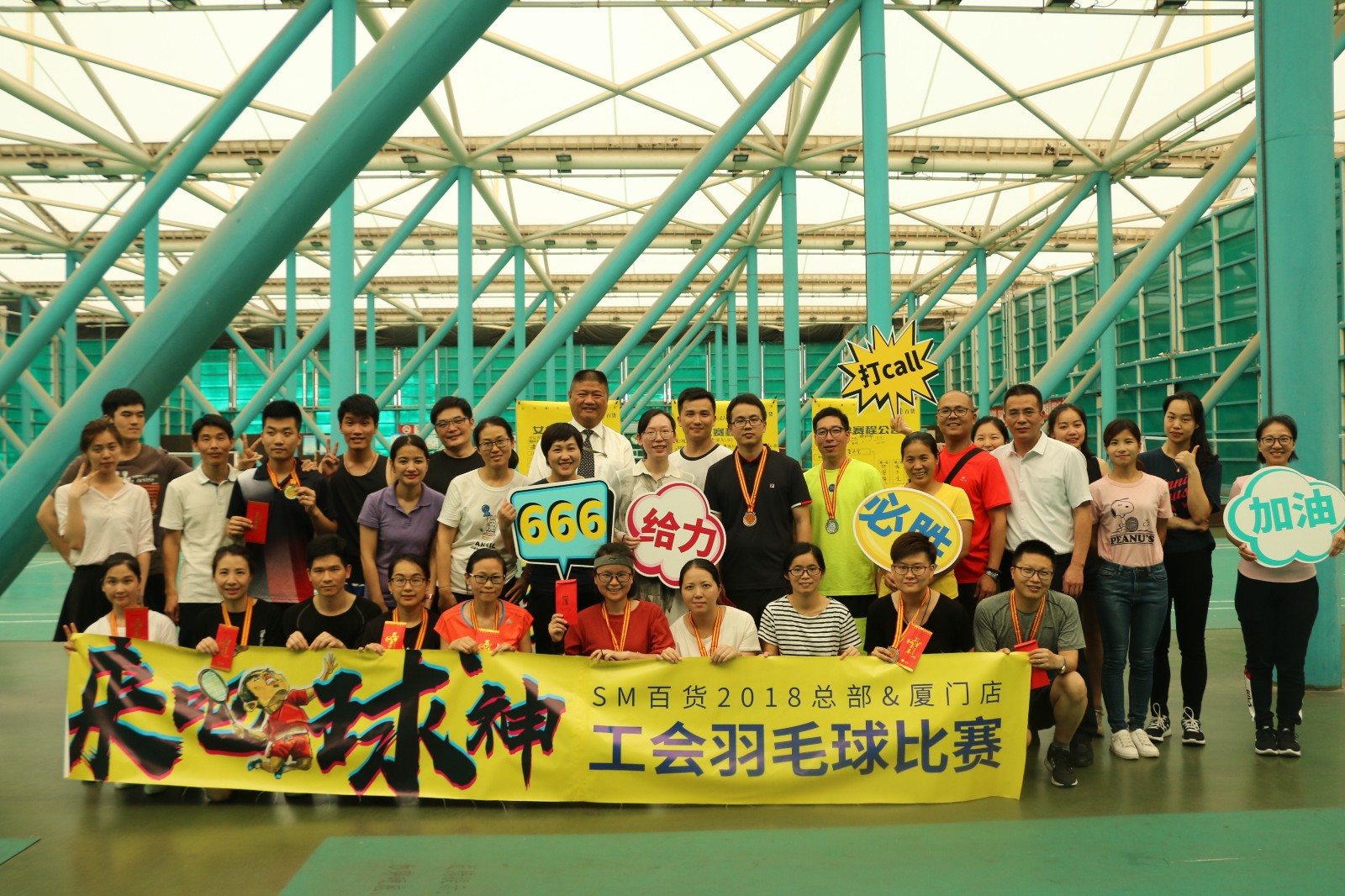 在SM百货,我们除了关注全体同仁的专业成长,更期待每一位员工都拥有强健的体魄,所以如果你有一颗火热的运动心,如果你全身上下都充满着运动细胞,不仅有每周的羽毛球社团包场陪你打球,更有一年一度高手云集的羽毛球争霸赛等着你。2018年度的“我是球神”-羽毛球大赛如约而至,选手们摩拳擦掌,积蓄了一年的技巧和力量,就在这一刻来一较高下啦!