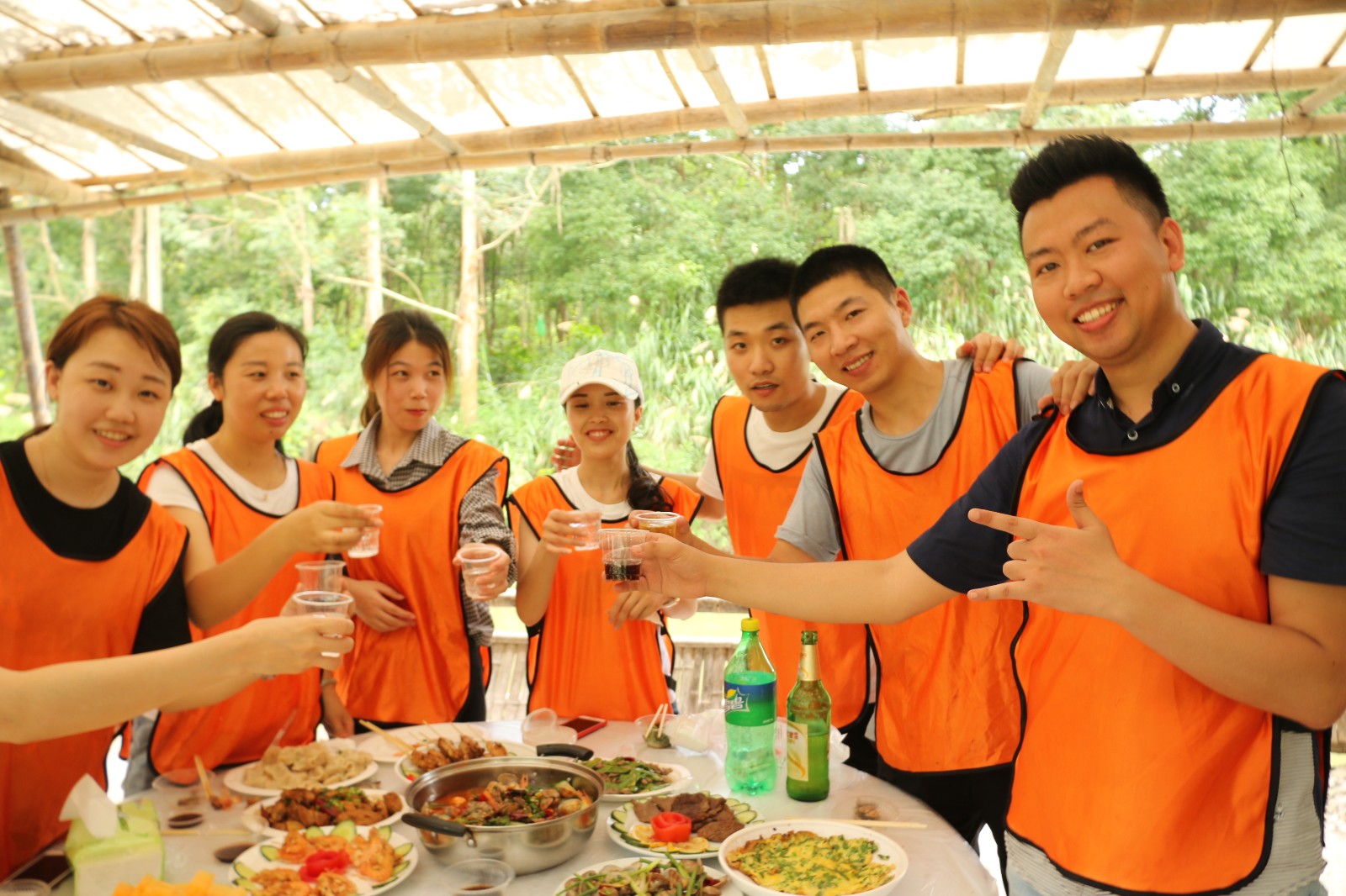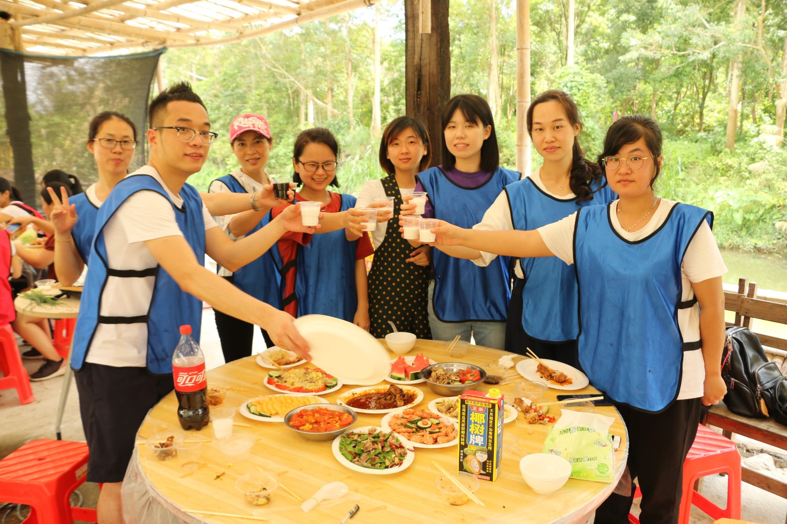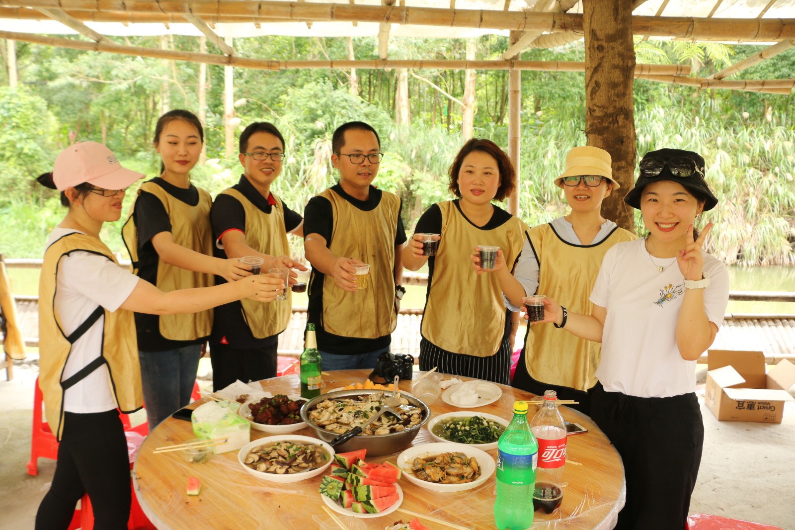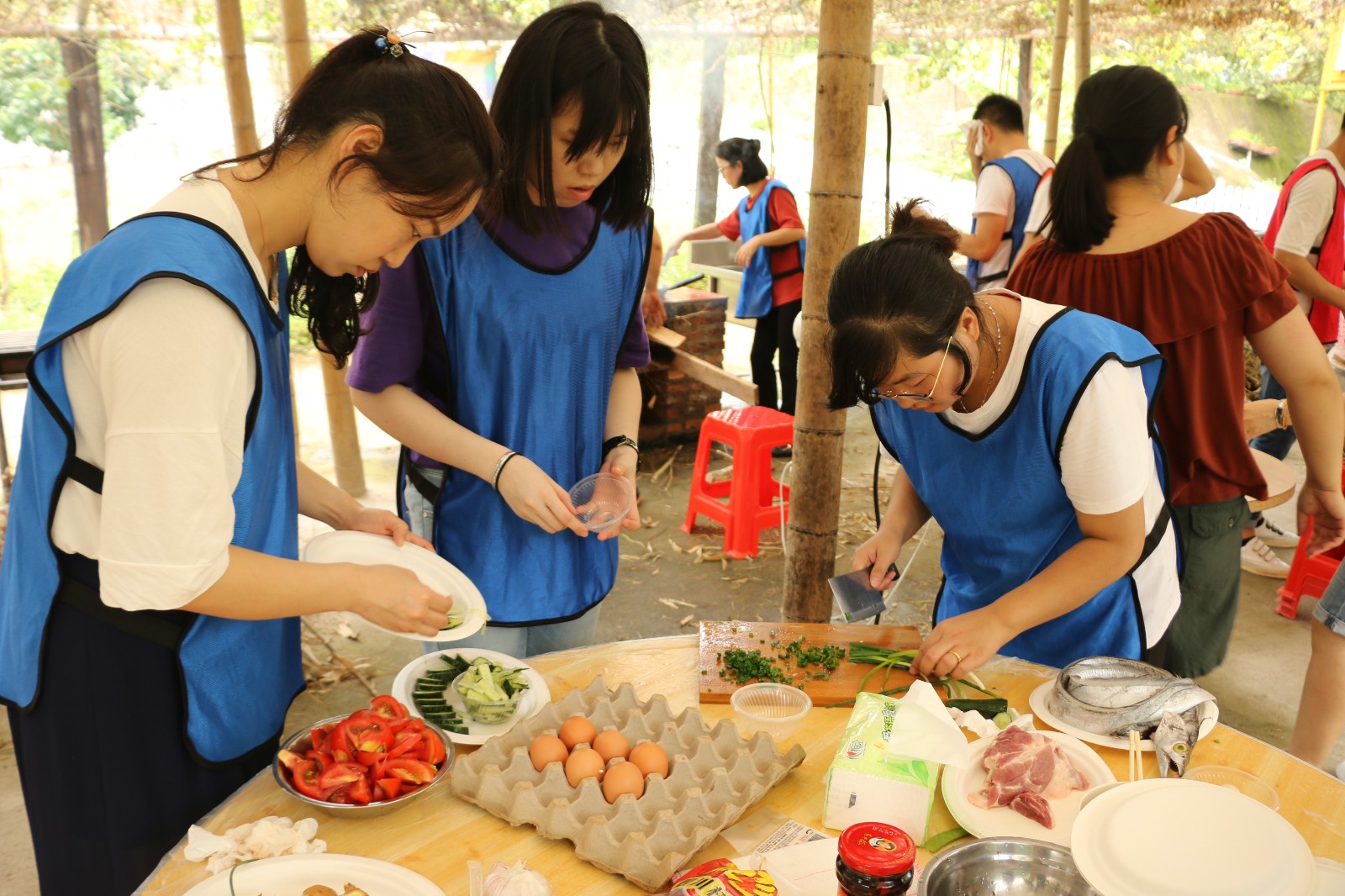 到了真正厨艺大比拼的环节啦,俗话说的好,一个厨子三个帮,伙伴们捡柴的、点火的、洗菜的、摆桌子的,都是为了今天的团队大厨们可以做出一道惊喜味蕾的美食。