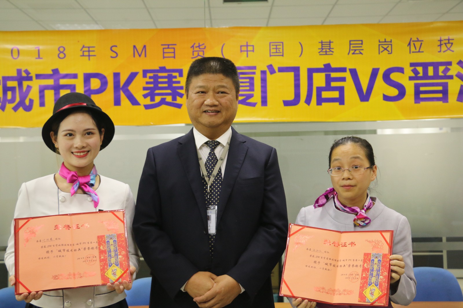 为不断提升SM百货收银及客服团队的服务质量及专业技能,打造一支拥有“标准化、专业化"的基层员工队伍,提升SM百货品牌影响力,特于2018年3月-4月举行基层岗位技能竞赛!本次竞赛设置了多个挑战项目,奖励丰富,精彩纷呈,除单店竞赛外,单店竞赛优胜者还在体系中参与城市PK赛,最终体系共决出24名单店技术标兵,4名城市技术标兵,获奖的同仁除获得丰厚的奖金的同时颁发“SM(百货)客服/收银教练”荣誉证书,教练将组建成为未来持续帮助各门店提升SM百货客服/收银服务质量和专业技能,提升服务品牌影响力的基层人才团队。