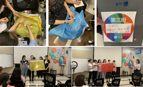 小组团建环节更是通过团队共创拉近了彼此的距离,帮助小组成员信任和信心的建立,塑造了团队形象,通过团队展示,使现场氛围到达高潮,团队学员们暗暗较劲,一定要在接下来的培训中争光添彩。